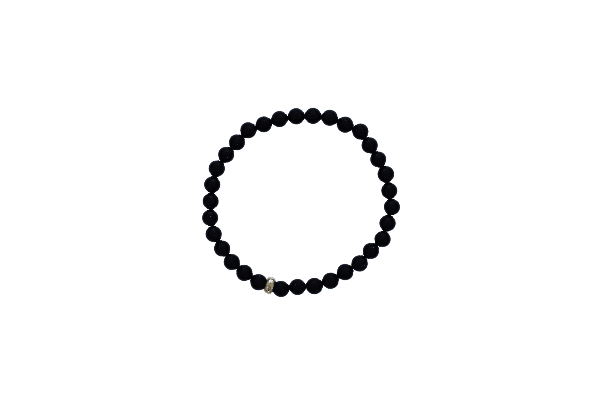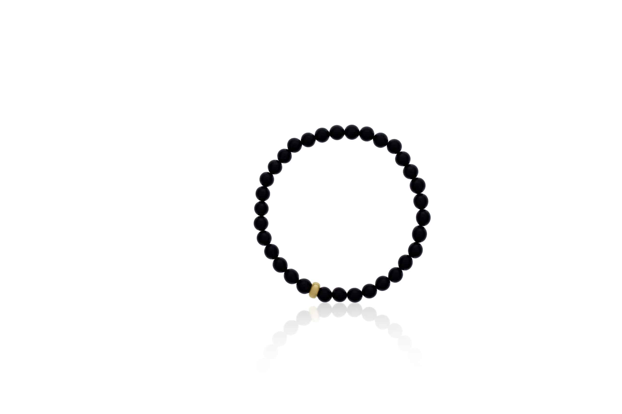 8″ MENS 6MM SMOOTH SHINY BLACK AGATE WITH RONDELLE GOLD FILLED SPACER