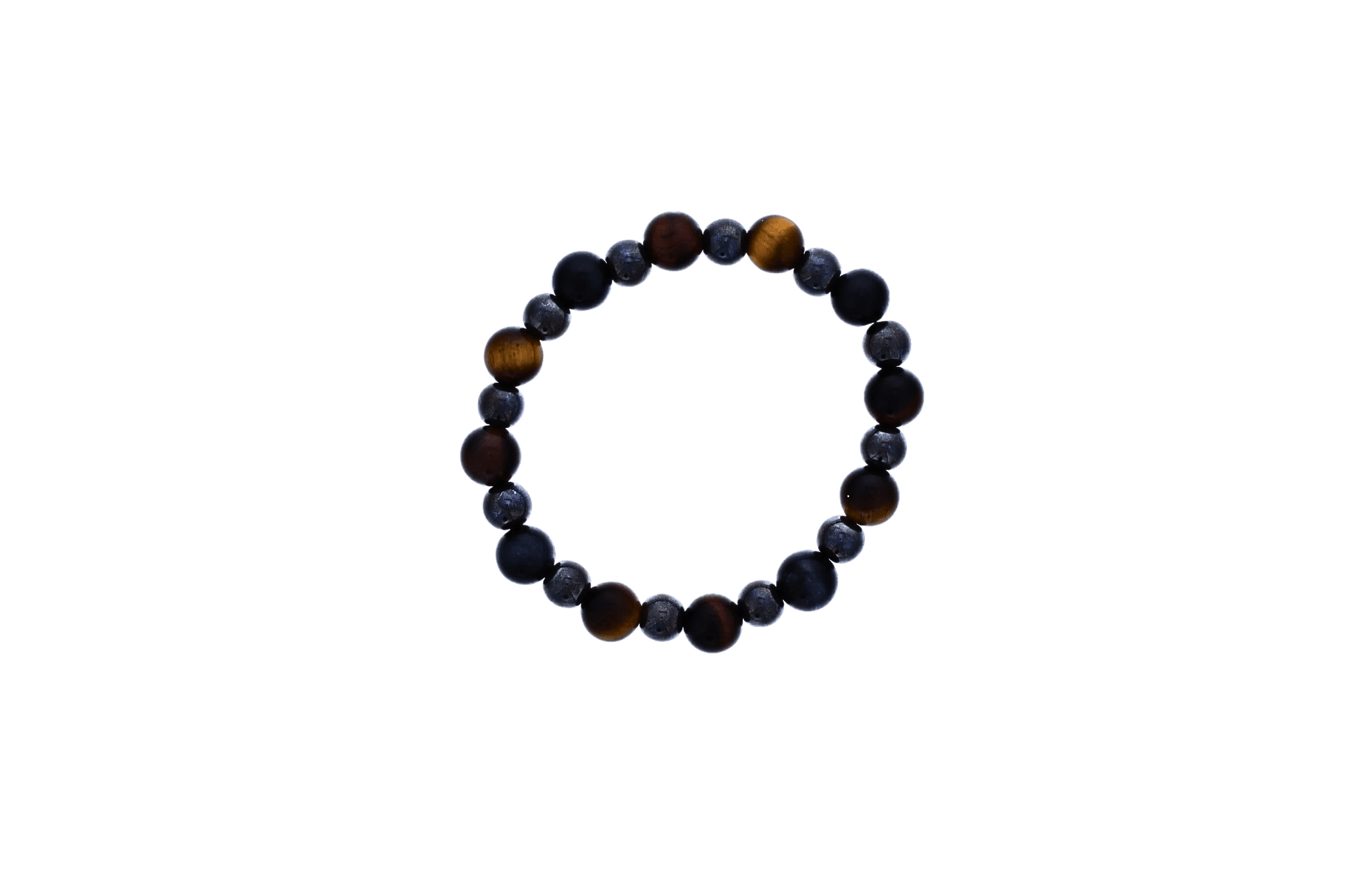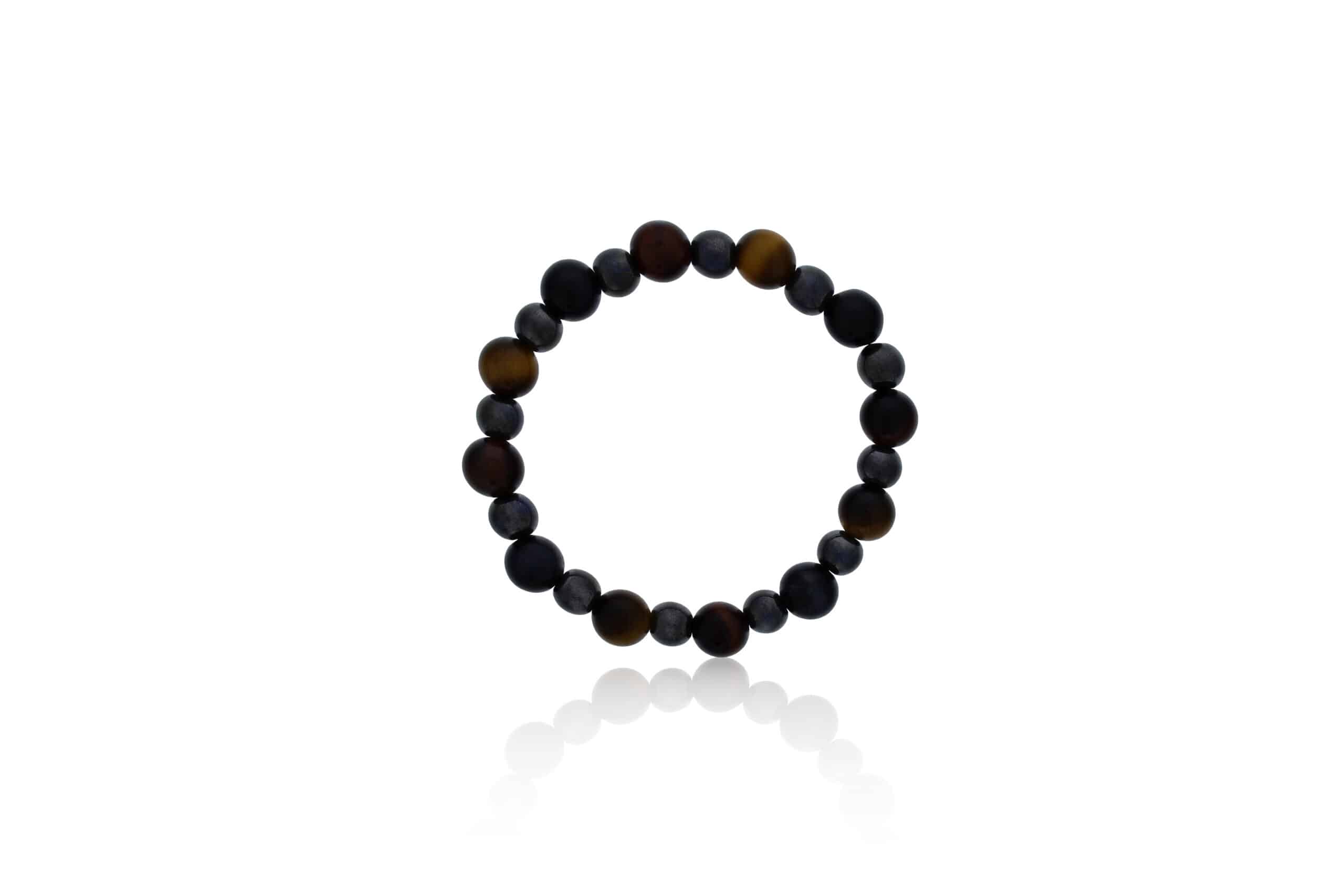 8″ 10MM MILTI COLORED TIGER EYE WITH ALTERNATING 8MM HEMATITE